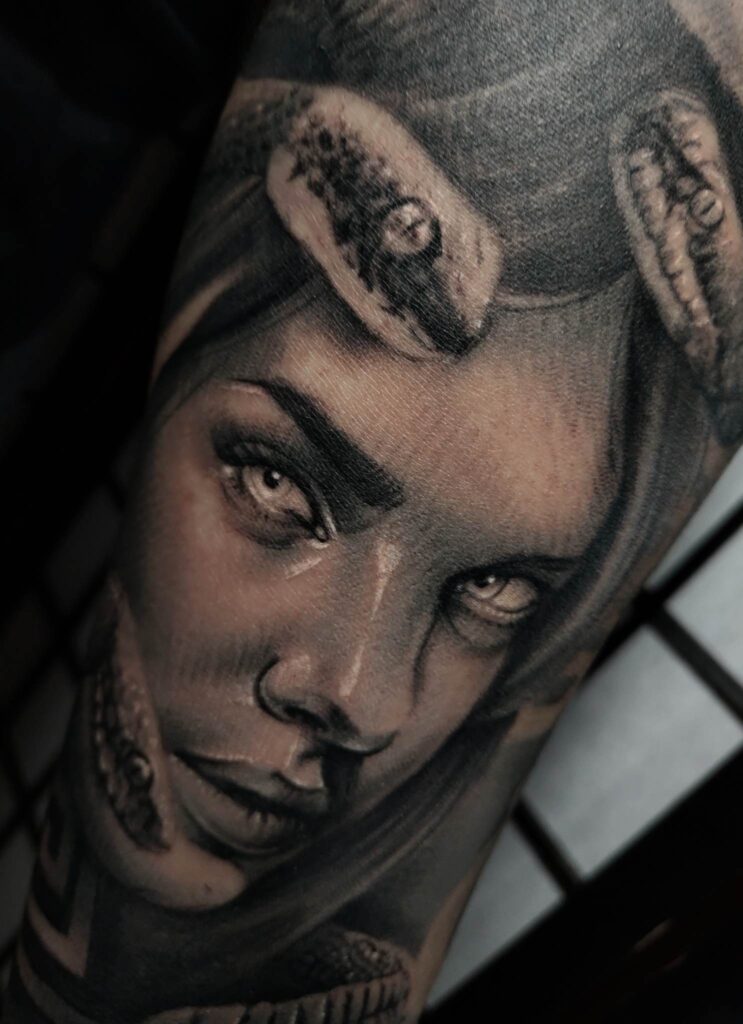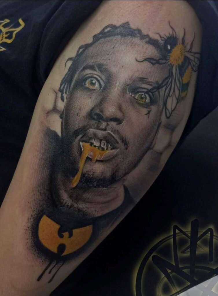 Luis Mendoza aka «Mortem» nacido en Ciudad Juarez, actualmente con 23 años de edad. Talvez muchos lo conozcan solo en su faceta de graff pero hace 6 años comenzó con la profesión del tatuaje. Trabajos MATERIAL